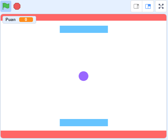 Oyunda amaç ortadaki topun kırmızı alanlara çarpmamasını sağlamaktır. Top başlangıç noktasından(0,0) rastgele hareket etmeye başlayacaktır. Mavi trambolinlerle topun kırmızı alanlara gelmesini engellemeye çalışıyoruz. Mavi trambolinlerin hareketini farenin sağa sola hareketi belirleyecektir. Tramboline çarpan her top geri dönecek ve bize bir puan kazandıracak. Eğer top kırmızı alanlardan birine çarparsa oyun bitti yazısı ekranda belirecektir.