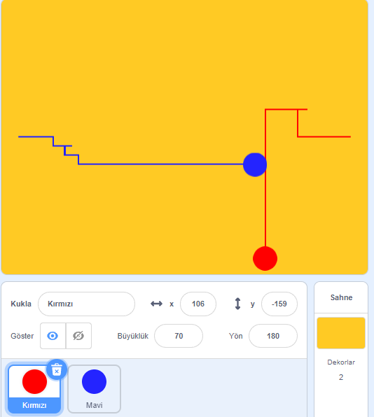 Bu oyunda iki farklı renge sahip toplar verdiğimiz yön komutuna göre hareket ederken arkasından sürekli kendi renginde çizgi çizecek. Kenera veya karşı topun rengine ilk temas eden oyunu kaybeder.